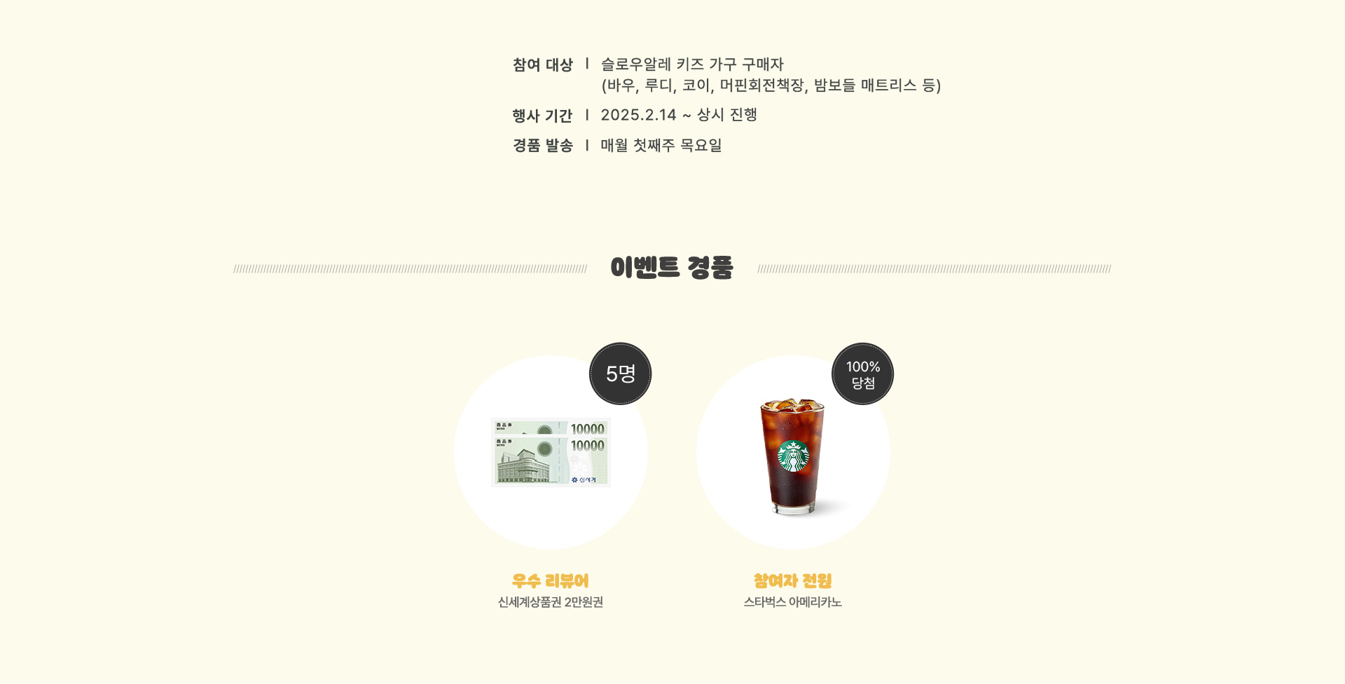 경품은 전월 참여자 정보 취합 후 매월 첫째주 목요일 일괄 발송됩니다.